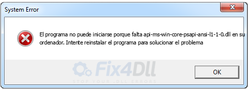 Para arreglar los errores relacionados con el archivo .DLL necesita descargar api-ms-win-core-psapi-ansi-l1-1-0.dll y copiarlo en la carpeta de instalación de la aplicación o juego, o copiarlo en la carpeta del sistema de Windows y debería arreglar el error. Si no sabes cómo instalar este archivo, por favor lee nuestro tutorial sobre Cómo instalar archivos DLL