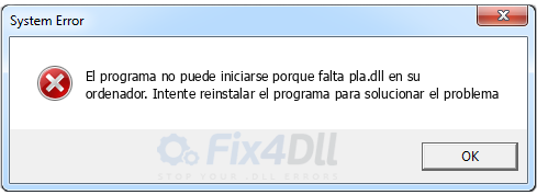 Para arreglar los errores relacionados con el archivo .DLL necesita descargar pla.dll y copiarlo en la carpeta de instalación de la aplicación o juego, o copiarlo en la carpeta del sistema de Windows y debería arreglar el error. Si no sabes cómo instalar este archivo, por favor lee nuestro tutorial sobre Cómo instalar archivos DLL